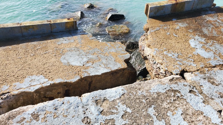 De otra parte, frente al mar ubica un muelle en cemento, que además de estar desprendiéndose, da acceso a un área que incita a los visitantes a saltar al mar. El peligro es que en esa zona ubican pilotes de hierro de una antigua vía del tren que no son visibles al estar sumergidos. De acuerdo con Pérez García en una ocasión fue necesario socorrer a un menor que cayó sobre uno de los tubos filosos y como resultado se hirió en el pecho.