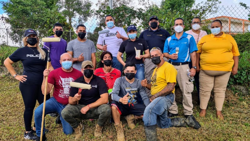 Parte del personal de la División de Relaciones con la Comunidad y de la Liga Atlética Policiaca del área de Caguas realizaron trabajos de mantenimiento, ornato y pintura en el gimnasio de la comunidad ubicado en el barrio La Mesa en Caguas.